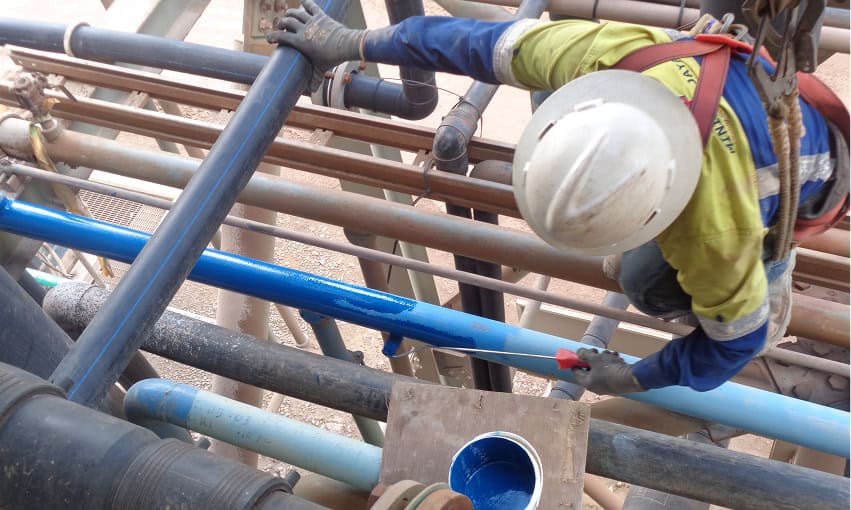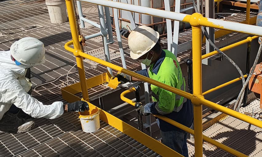 Pengecatan pelindung dan pencegahan korosi pada struktur handrail dan intertank screen untuk meningkatkan keselamatan serta memperpanjang usia peralatan.